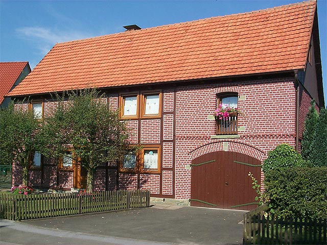 Das Fachwerkhaus der Familie Totta hat durch seine sichtbare Ausmauerung ein für Meiningsen untypisches Aussehen.