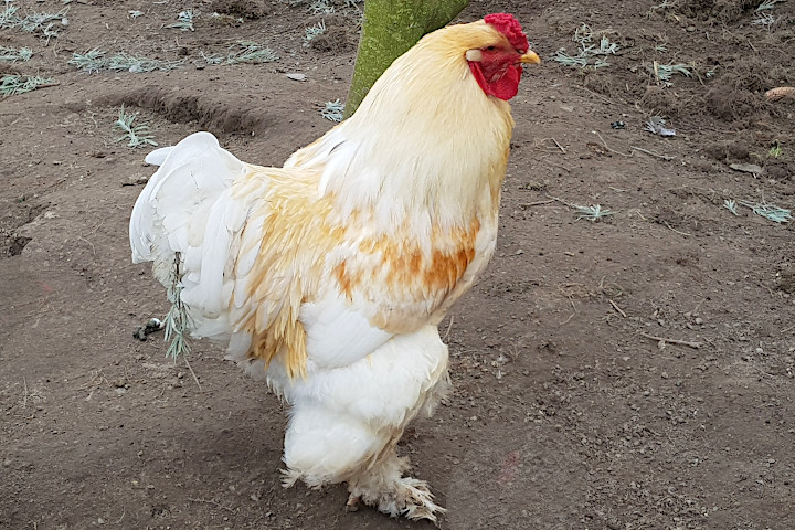 Ok, es handelt sich um einen Meiningser Hahn und nicht um ein Huhn. Aber er ist der dominanteste in ganz Meiningsen. Nachkommen zeugt er auch nicht, denn er ist für etwas Höheres berufen.