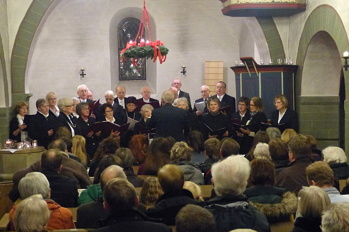 Zum Abschluss des Adventskonzerts singen die Chorgemeinschaft Liederkranz, die Frauensingegruppe Scheidingen und die Gemeinde das Lied Tochter Zion: