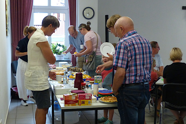Mit Kaffee und Kuchen geht es im Gemeindehaus pünktlich um 16 Uhr los. Wo ist der Kuchen, wo ist der Kaffee?