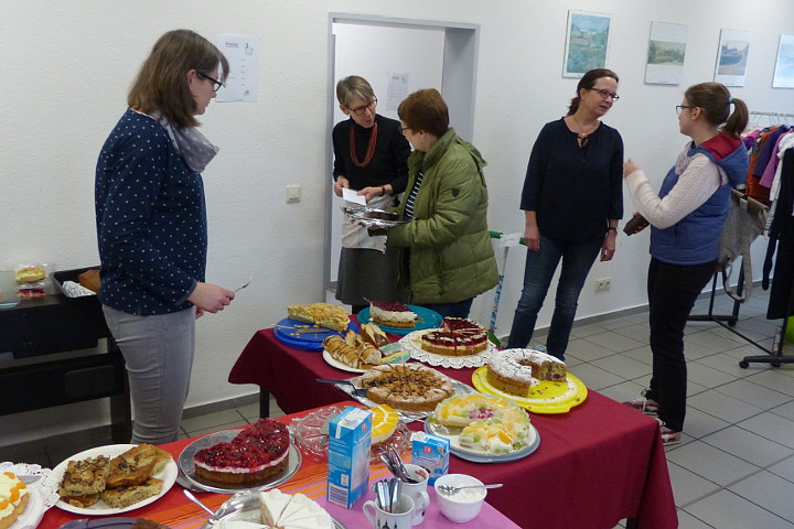 In allen Räumlichkeiten des Gemeindehauses wird getrödelt, geschmatzt und gequatscht.