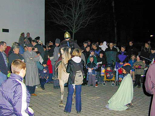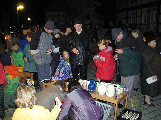 Zum Laternenumzug trifft sich Klein und Groß vor dem Gemeindehaus. Auf die selbstgebastelte Lampe ist jedes Kind sehr stolz. Aus Sicherheitsgründen gibt es nur noch wenige mit echter Kerze.