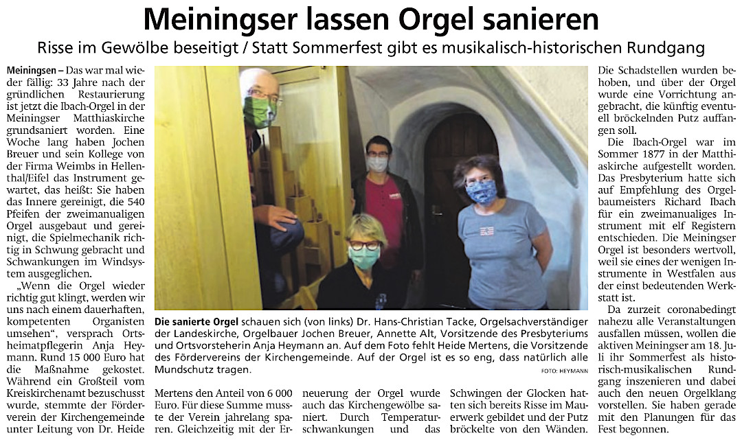 Ermöglicht haben das die Stiftung Orgelklang der evangelischen Kirche Deutschland und der Förderverein der Kirchengemeinde Meiningsen e. V.
