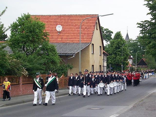 Dieses Jahr zum letzten Mal zieht die Schützenparade durch Meiningsen zum Festplatz. Hier wird durch Vogelschießen ein neuer Schützenkönig ermittelt.