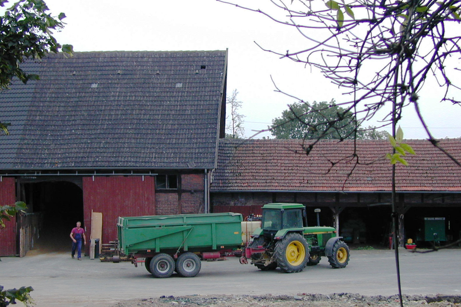 Noch im August 2000 herrscht um die große Scheune vom Hof Blumendeller noch geschäftiges Treiben.