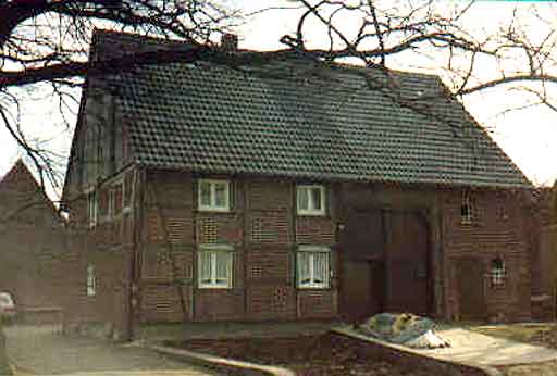 Das Fachwerkhaus Lüke wurde zur Hofseite hin von außen mit einer Isolierung versehen. Dabei mußte die Balkeninschrift über der Eingangstür verdeckt werden. Vorher jedoch hat man den Spruch auf ein Eichenbrett übertragen und über dem Hauseingang angebracht: