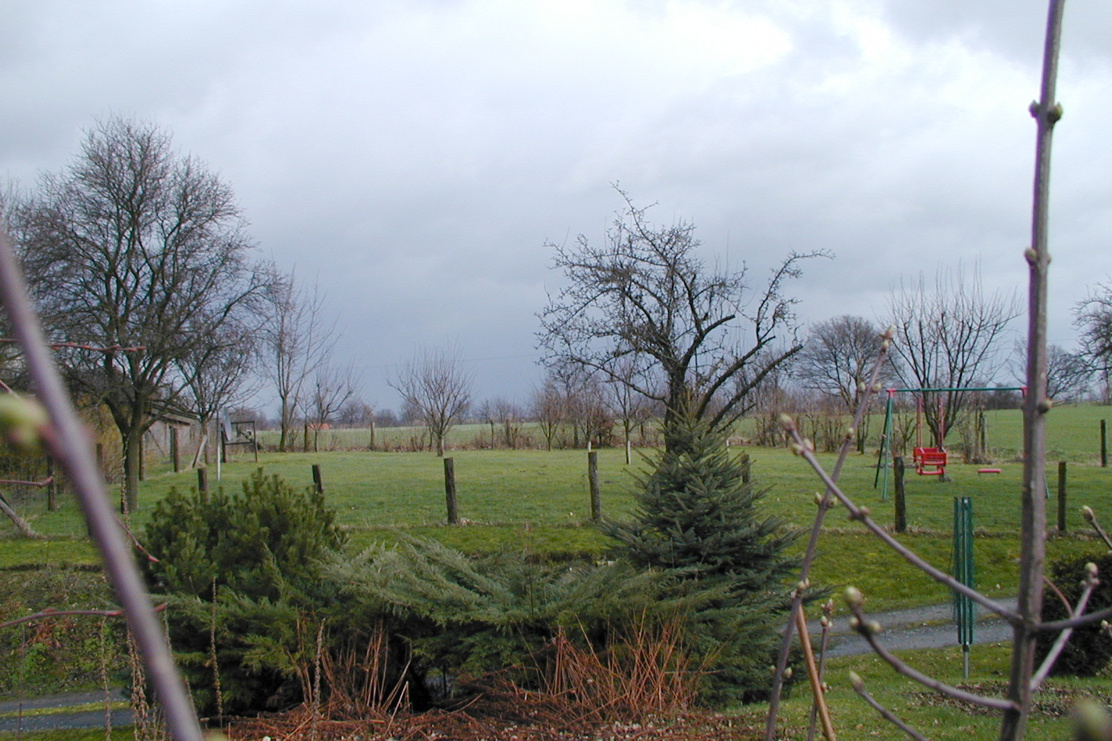 Ansicht ähnlich wie oben, links der Windmühlenberg, rechts hinter den Bäumen das Haus Schlak.