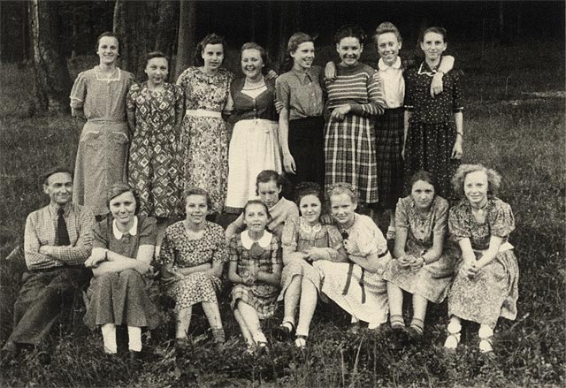 Ausflug mit Vikar Kleine-Tebbe ca 1950. (Foto von