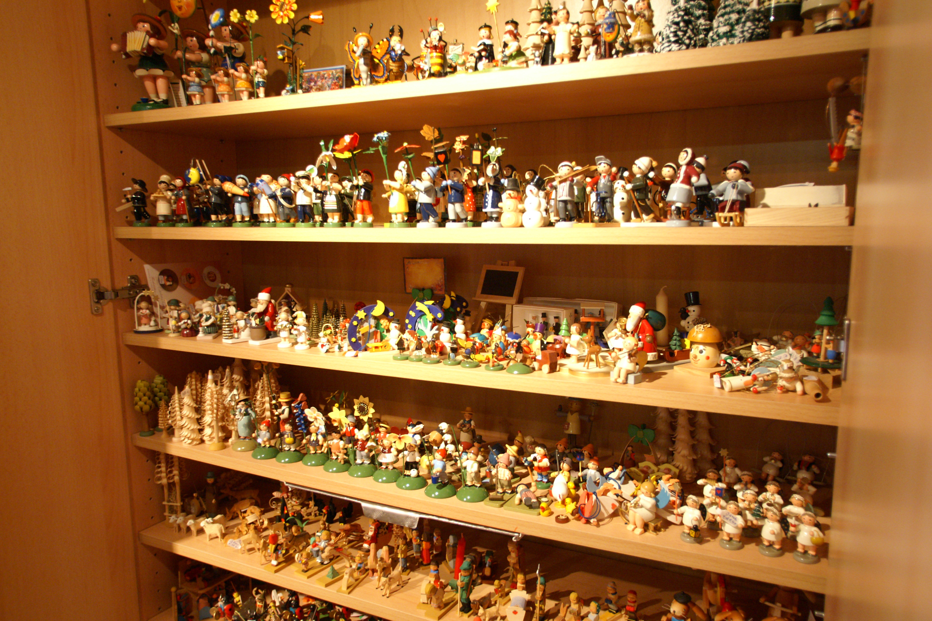 Nicht nur Räuchermännchen und Engelchen aus dem Erzgebirge zur Weihnachtszeit findet man unter den Schätzen, sondern auch ganzjährig Erzgebirge-Figuren aus bemaltem Holz, Weihnachtspyramiden, Lichte- bzw. Schwibbogen, Spieluhren und geschmackvoll dekorierte Kränzchen und vieles andere mehr. Unschätzbare Werte.