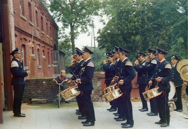 Der Spielmannszug auf dem Feuerwehrfest 1971, vorne Dietrich Brauks (Foto von Wilhelm Junker)